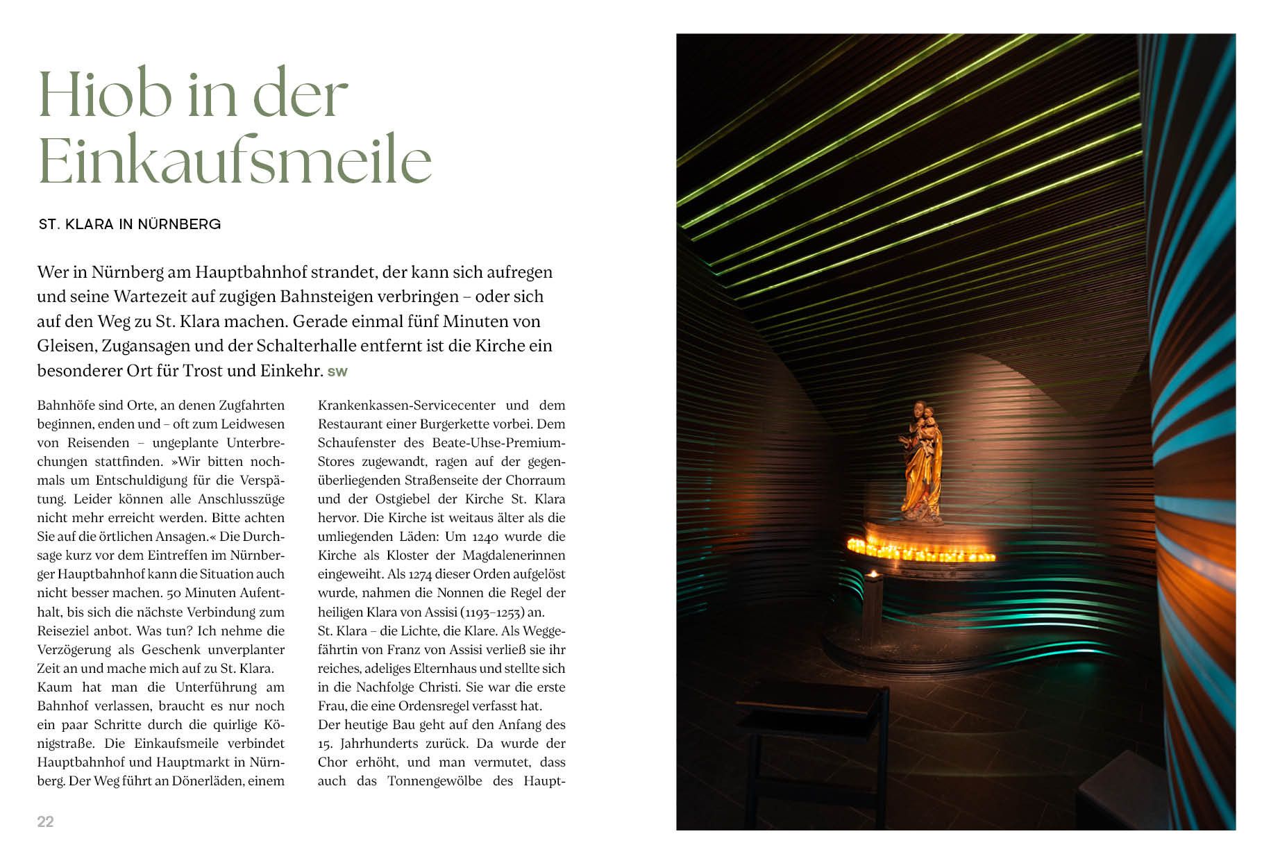 Johanna Beck und Stefan Weigand nehmen die Lesenden mit an markante Plätze. Es entsteht eine spannende und kurzweilige Reise zu Kirchen, die wirklich noch Kirchen sind: Orte, an denen man mit dem Heiligen in Berührung kommt – und Raum für sich und Gott erfährt.