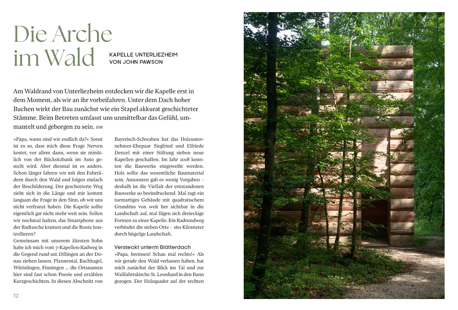 »Wie hat das eigentlich bei dir angefangen mit der Leidenschaft für Kirchengebäude?« Als wir beide uns zum ersten Mal begegnet sind und die Idee zu diesem Buch noch in den Kinderschuhen steckte, hatten wir für unser Treffen die gleiche Frage im Gepäck. Vor uns auf dem Tisch standen Kaffeetassen und ein Teller mit Kirschkuchen. Und wir stellten beide fest: Unsere Begeisterung für Architektur, Kirchen und sakrale Gebäude kam nicht aus einer konkreten Begebenheit heraus – sie war irgendwie schon immer da. Auf der Fahrt in den Urlaub noch schnell einen Schlenker von der Autobahn machen, um eine Kirche aus den Sechzigern zu sehen. Oder beim Tagesausflug in die übernächste Großstadt auch einen Abstecher zu einer Kirche am Stadtrand unternehmen. Für uns beide waren solche Ausflüge zu Kirchengebäuden ganz normal.